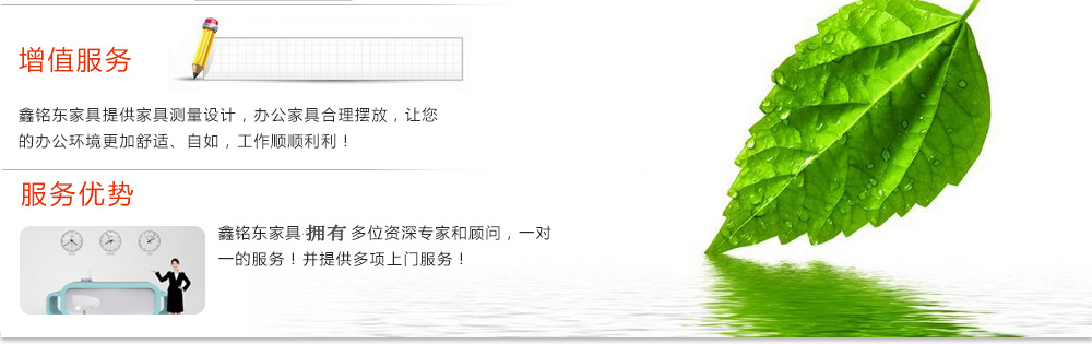 深圳市鑫銘東家具有限公司專業(yè)銷售各類辦公家具!產(chǎn)品涉及多種系列,如:班臺、班椅、屏風(fēng)、會議桌、會議椅、辦公沙發(fā)、茶幾、辦公桌、文件柜、電腦桌椅、各式餐臺、餐椅、書柜等辦公家具。 鑫銘東家具擁有一批優(yōu)秀的家具設(shè)計、生產(chǎn)及營銷的專業(yè)人士和高素質(zhì)的管理隊伍。銘東家具以"先難后易"之戰(zhàn)略,在產(chǎn)品結(jié)構(gòu)、產(chǎn)品質(zhì)量及服務(wù)水平方面,均推陳出新,力求完善,精益求精。使我們的產(chǎn)品質(zhì)量保持在國內(nèi)外家具潮流的先進(jìn)水平,力求滿足客戶的特殊需求。鑫銘東家具多年來致力于環(huán)保、實用家具的設(shè)計與開發(fā),集生產(chǎn)、銷售、服務(wù)于一體。本著"以人為本"的設(shè)計理念,大量開發(fā)符合人體工程學(xué)的各種產(chǎn)品,以"誠信為本"的質(zhì)量方針,真材實料,認(rèn)認(rèn)真真做產(chǎn)品,實實在在做人。鑫銘東家具更致力于創(chuàng)造"零維修率"的制造境界,實現(xiàn)"沒有維修的服務(wù)才是最好服務(wù)"的口號》了解更多